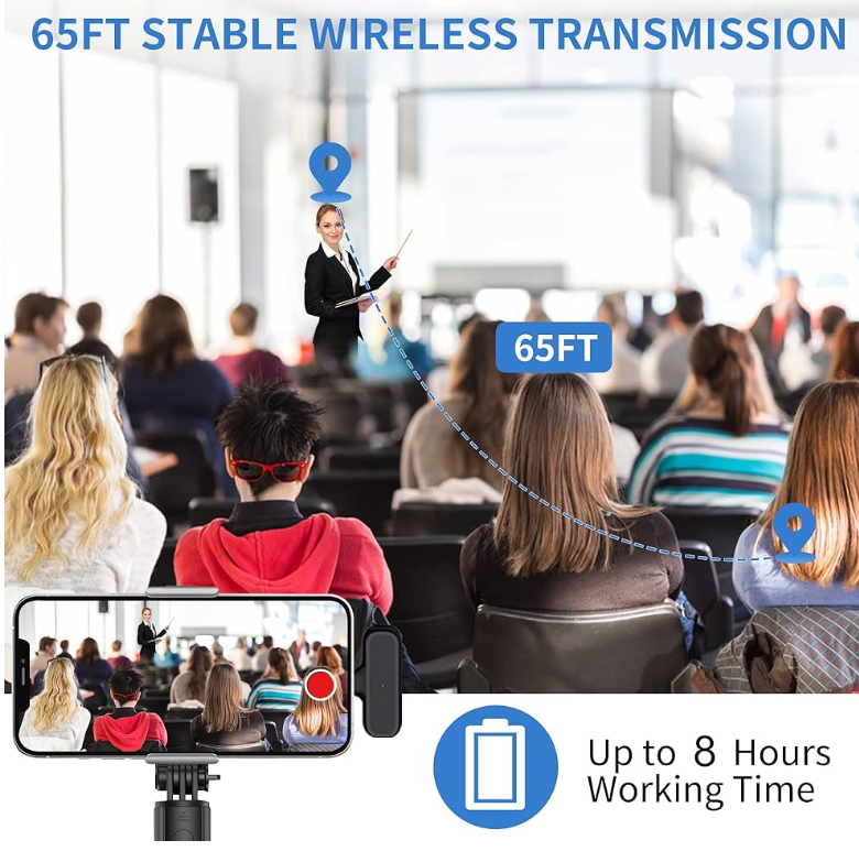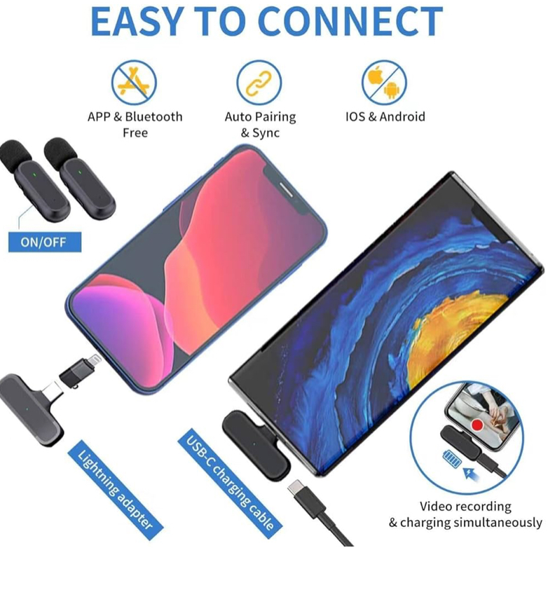 2 Pack Professional Wireless Lavalier Microphone for iPhone iPad Android with Charging Case Noise Reduction Plug-Play Clip on Lapel Mic for Video Recording Vlogging, YouTube, Interview, Live Streaming.