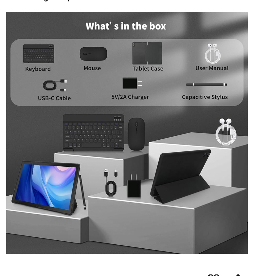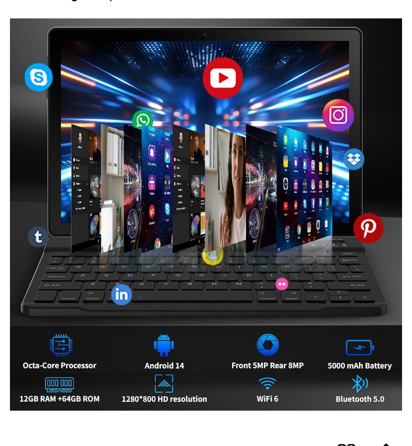 Android Tablet, 10.1 Inch Android 14 Tablet with 1280×800 IPS HD Touch Screen, Dual Camera, 64GB Storage 1TB Expansion, 8 in 1 Tablets Kit with Keyboard, Protective Case, Mouse, Stylus, BT 5.0, WiFi 6. Item price $150