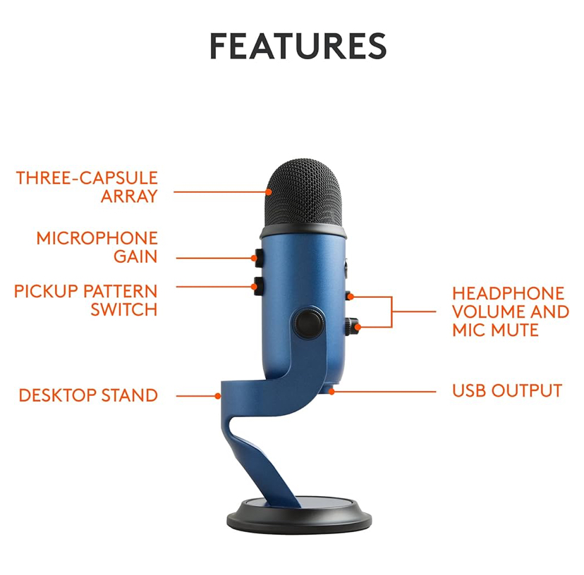 Logitech Creators Blue Yeti USB Microphone for Gaming, Streaming, Podcast, YouTube, Discord, PC, Studio Sound, Plug & Play-Midnight Blue Item price $198