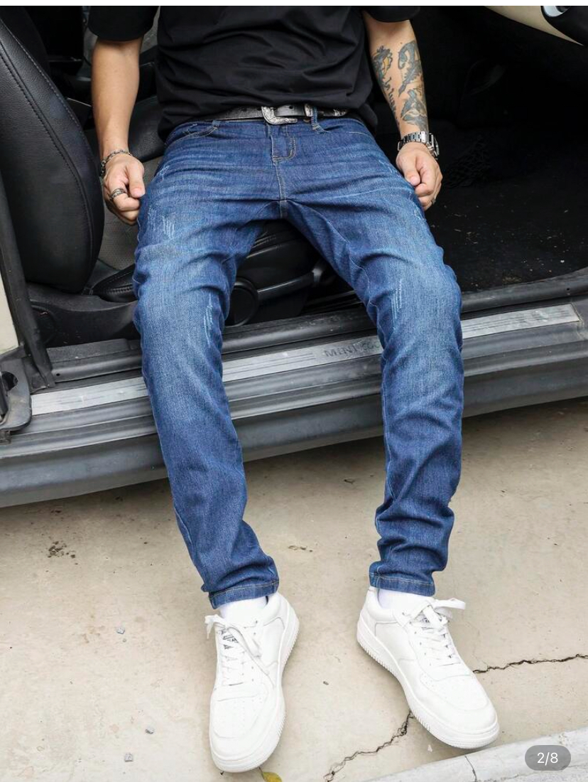 Men’s Cat Scratch Stretch Slim Fit Bias Pocket Straight Leg Jeans, Relaxed Long Fit, Horseback Wash, Vintage Blue, size 28, 30, 32,34, 36,38 Perfect For Going Out With Friends Y2K Style
