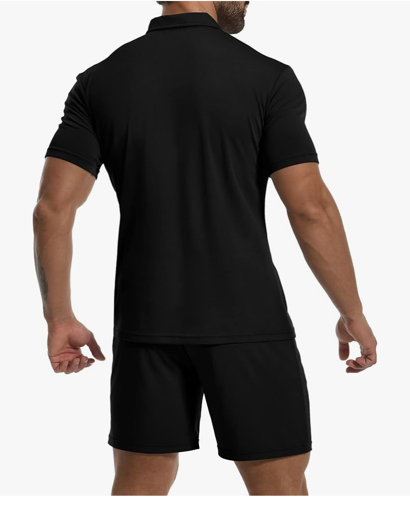 Be the first to review “Short Sleeve Casual Polo Shirt and Shorts Sets Two Piece Summer Outfits Zip Polo (Black)” Cancel reply