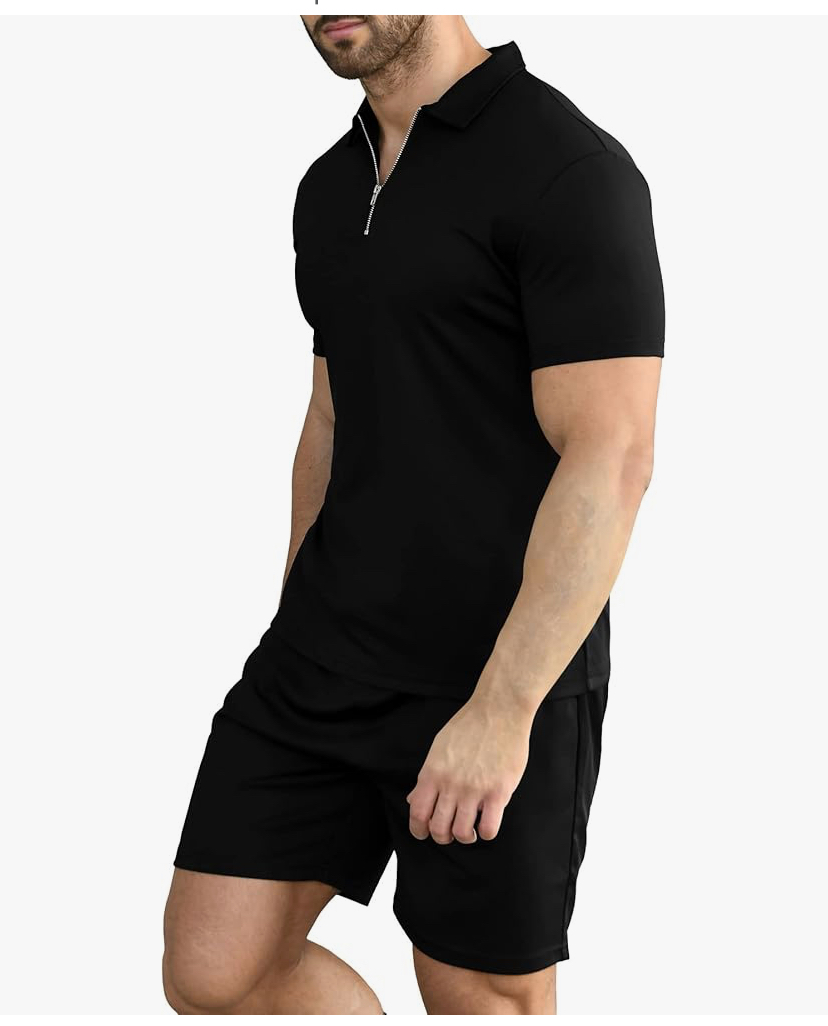 Short Sleeve Casual Polo Shirt and Shorts Sets Two Piece Summer Outfits Zip Polo Tracksuit Set for Men color black available size small, Medium, X-Large- XX-Large $49.19