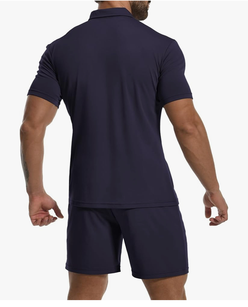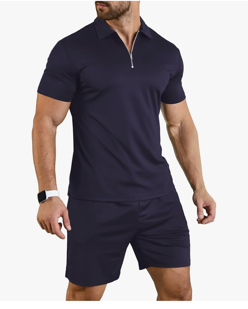 Be the first to review “Short Sleeve Casual Polo Shirt and Shorts Sets Two Piece Summer Outfits Zip Polo (Navy)” Cancel reply