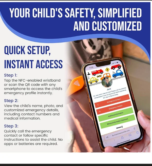Smart Bands for Kids if Lost, Child Safety ID Wristband, NFC Bracelet for Children, Smart Medical ID Band, Lost Kids ID Bracelet, Disney Essentials for Kids, QR Identification (Navy) $48