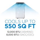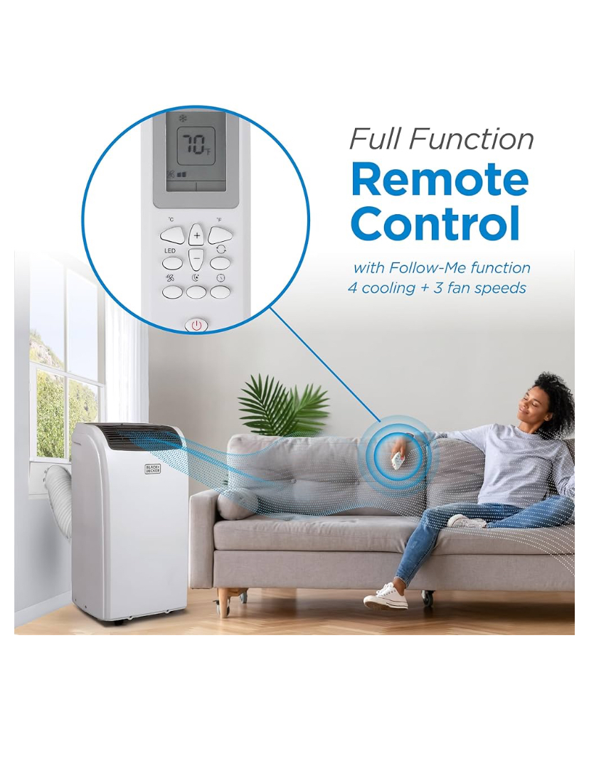 Smart Portable Air Conditioner with Heat, 12,000 BTU Cooling, 9,000 BTU Heating for Rooms up to 550 Sq. Ft., Follow Me Remote, BPACT12HWT, White. Item price $650