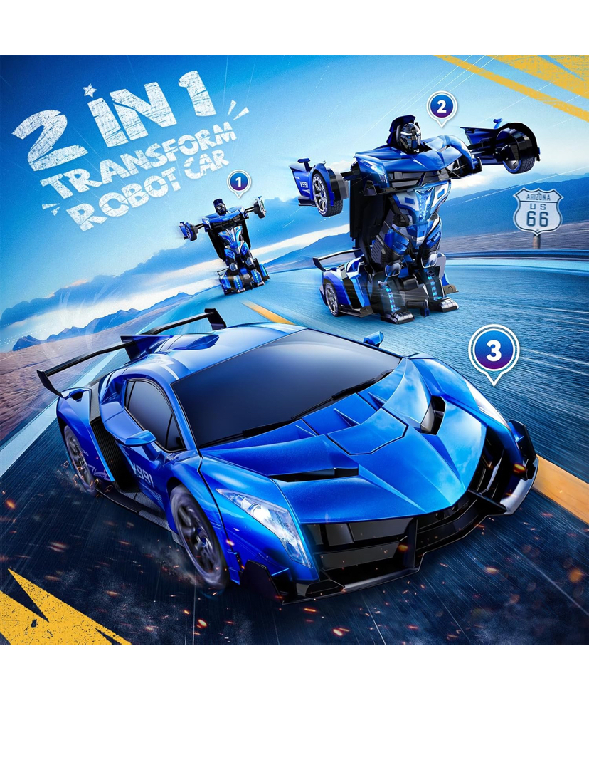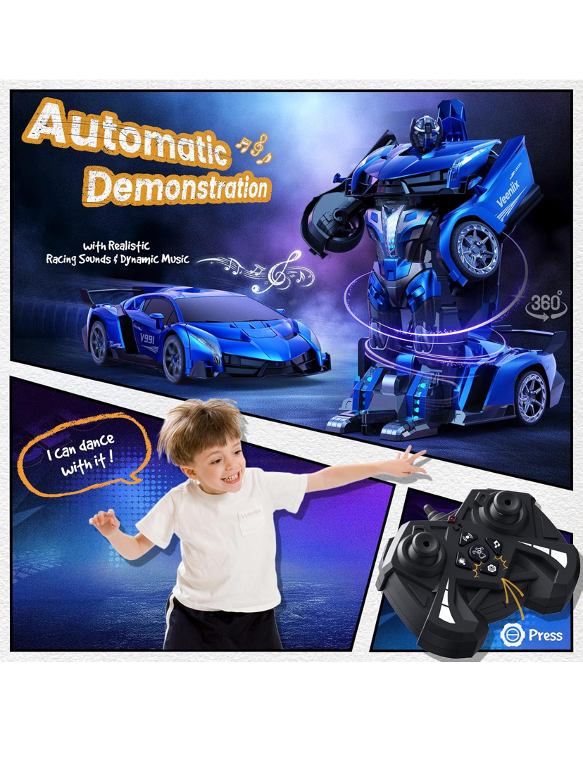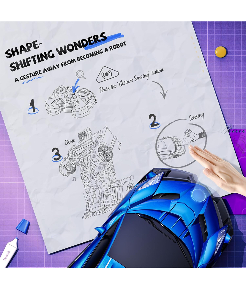 V991 Transform Remote Control Car, 1:10 Big Size, 2 Rechargeable Batteries for 70Min, 2.4GHz Gesture Sensing, One-Key Deformation, Robot Toys Gifts for Boys and Girls (Blue)